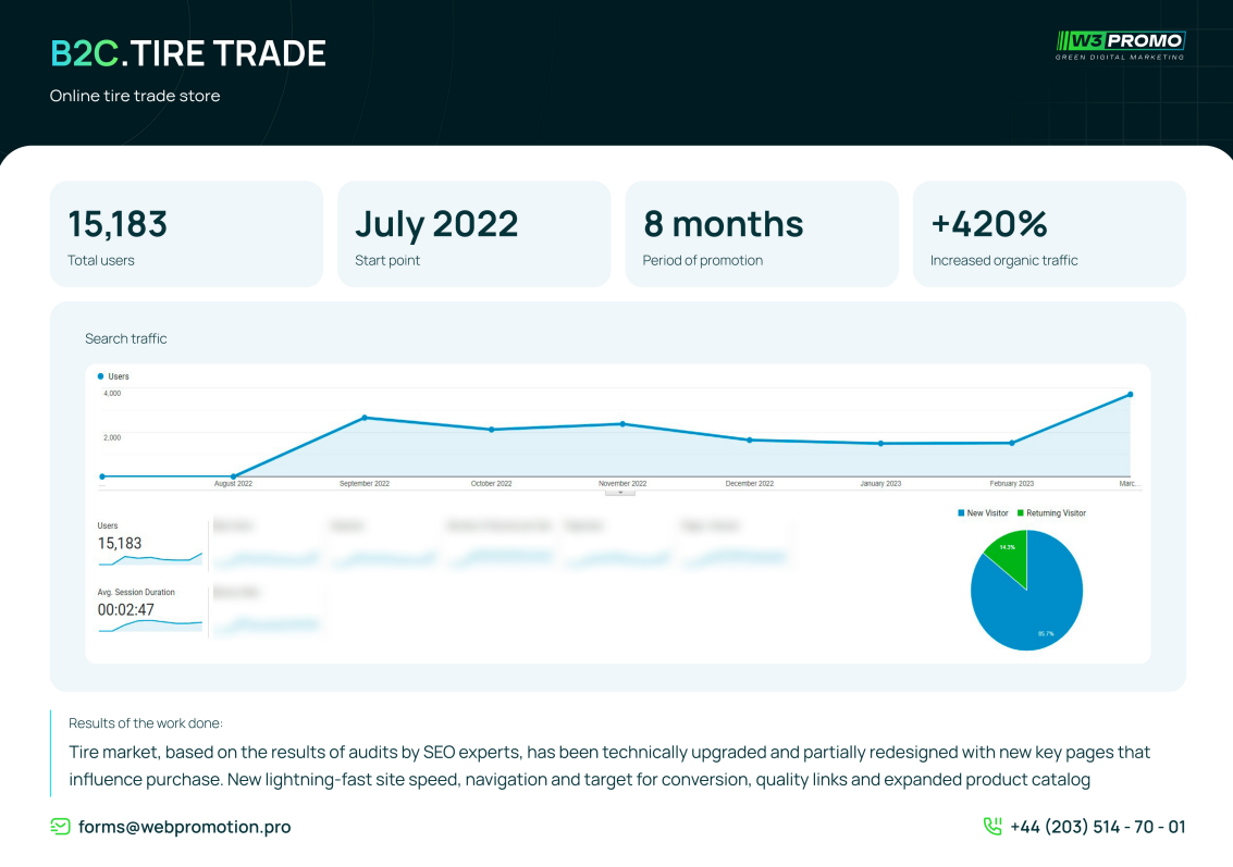 The current case perfectly displays how the comprehensive approach to SEO optimization and user experience improvement allows even small online stores to achieve big results in the competitive niches. Not only has Web Promotion increased the visibility and traffic flow to the website but also helped the client to build a loyal audience and ensure a stable sales growth. We continue our further cooperation with the client within assortment development and website promotion.